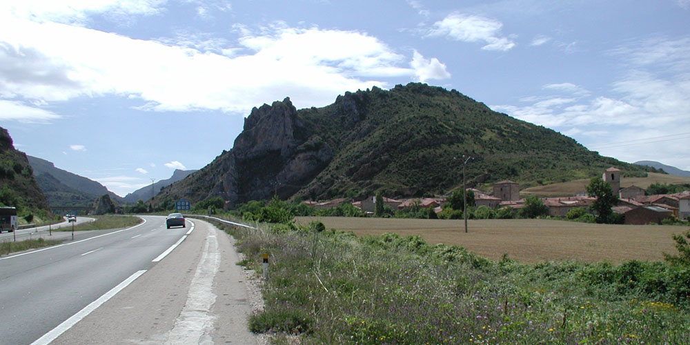 平野ばかりのフランスからスペインに入るなり山が現れてきた。フランスの高速道路からそのまま継続されたこの道路が高速道路