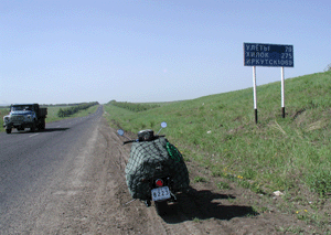 この写真の標識は、「イルクーツク」まで1069km